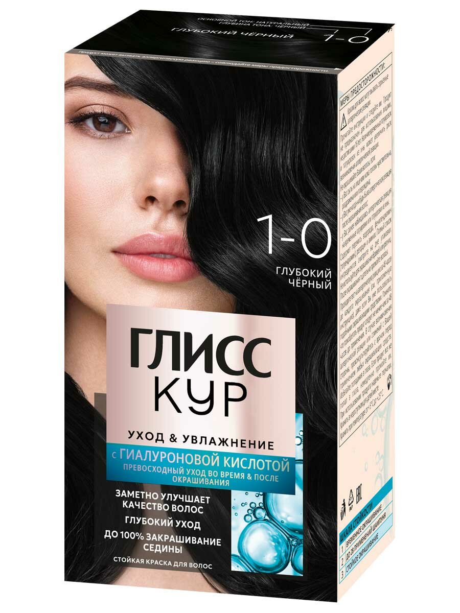Стойкая краска для волос Глисс Кур Уход и Увлажнение т. 1-0 Глубокий чёрный 135 мл