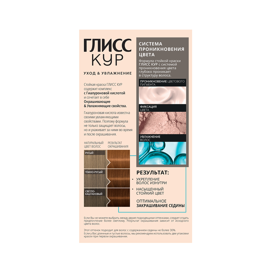 Глисс Кур Стойкая краска для волос Уход & Увлажнение, 6-0 Светло-каштановый, 135 мл
