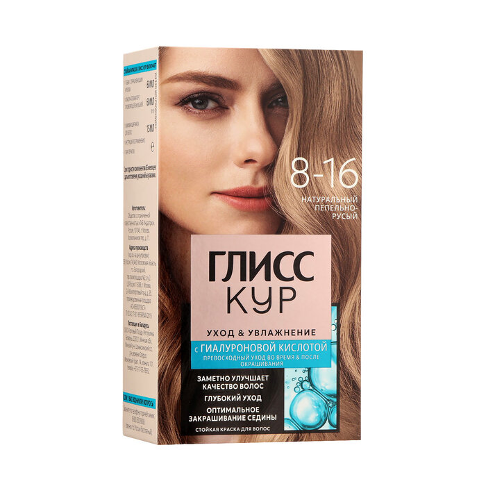 Глисс Кур Уход & Увлажнение Стойкая краска для волос, 8-16 натуральный пепельно-русый