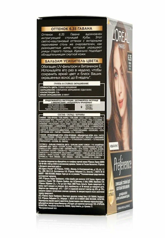 Ниже Вы можете прочитать отзывы на L'Oreal Preference Стойкая краска для волос , оттенок 6.35, Гавана, 174 мл, ознакомится с подробными характеристиками, посмотреть интересные обзоры и фотографии на L'Oreal Preference Стойкая краска для волос , оттенок 6.35, Гавана, 174 мл.