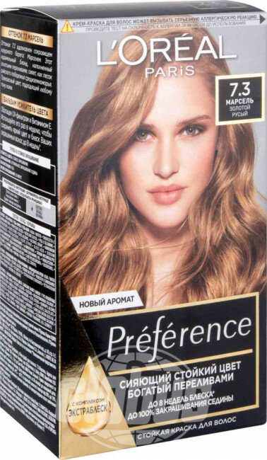 Ниже Вы можете прочитать отзывы на L'Oreal Paris Стойкая краска для волос "Preference", оттенок 7.3, Марсель, Золотой Русый, ознакомится с подробными характеристиками, посмотреть интересные обзоры и фотографии на L'Oreal Paris Стойкая краска для волос "Preference", оттенок 7.3, Марсель, Золотой Русый.