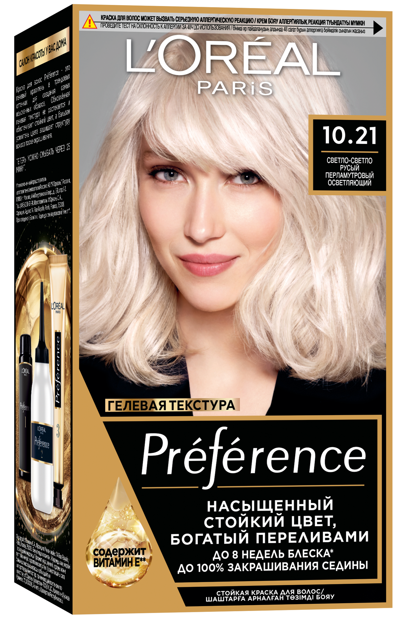 L'Oreal Paris Стойкая краска для волос Preference, оттенок 10.21, Стокгольм, светло-светло-русый перламутровый осветляющий