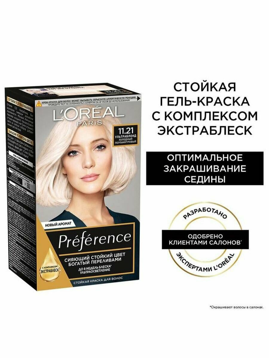 L'Oreal Paris Preference стойкая краска для волос, 11.21 ультраблонд холодный перламутровый, 174 мл