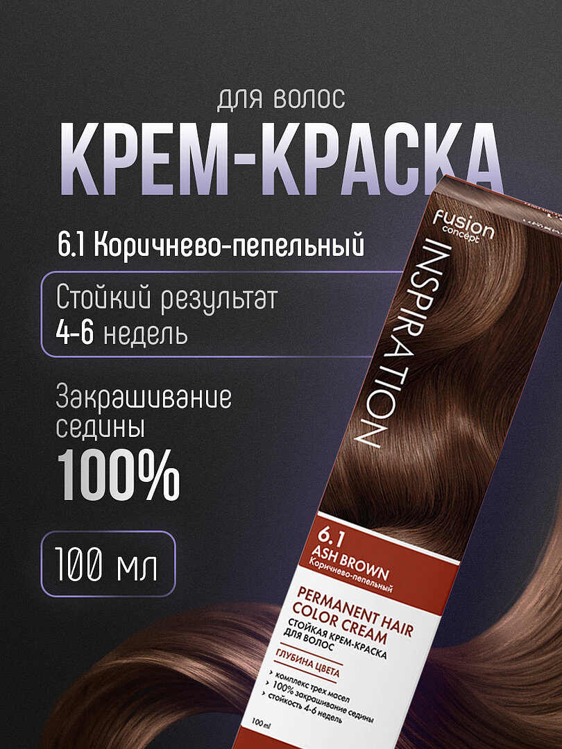 Купить Крем-краска INSPIRATION для окрашивания волос CONCEPT FUSION 6.1 коричнево-пепельный 100 мл