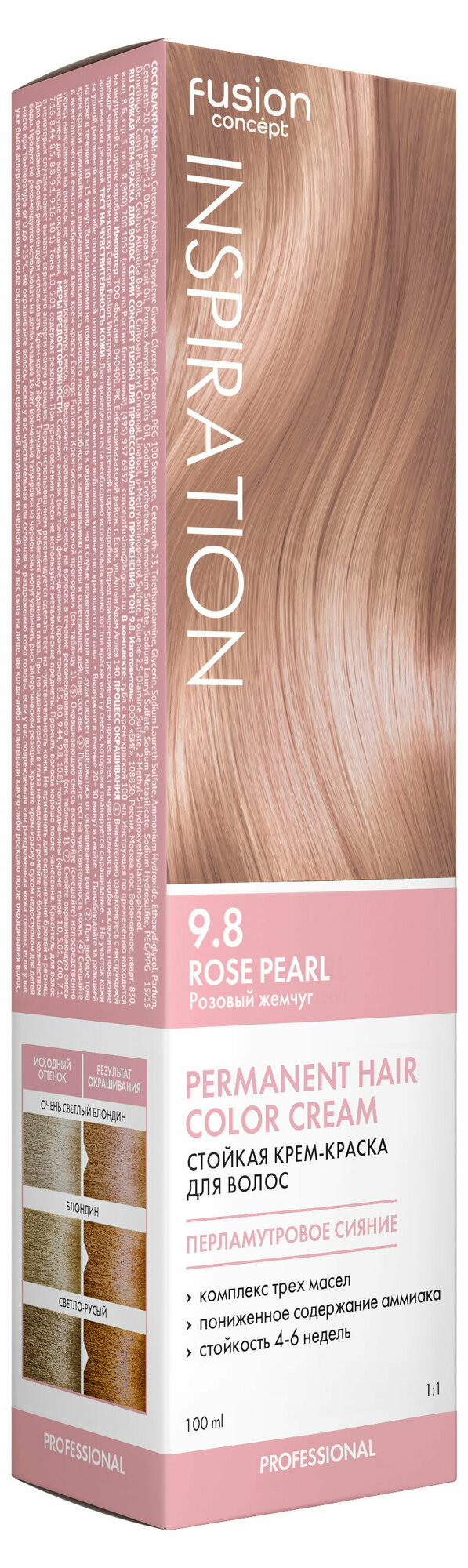 Крем-краска INSPIRATION для окрашивания волос CONCEPT FUSION 9.8 розовый жемчуг 100 мл