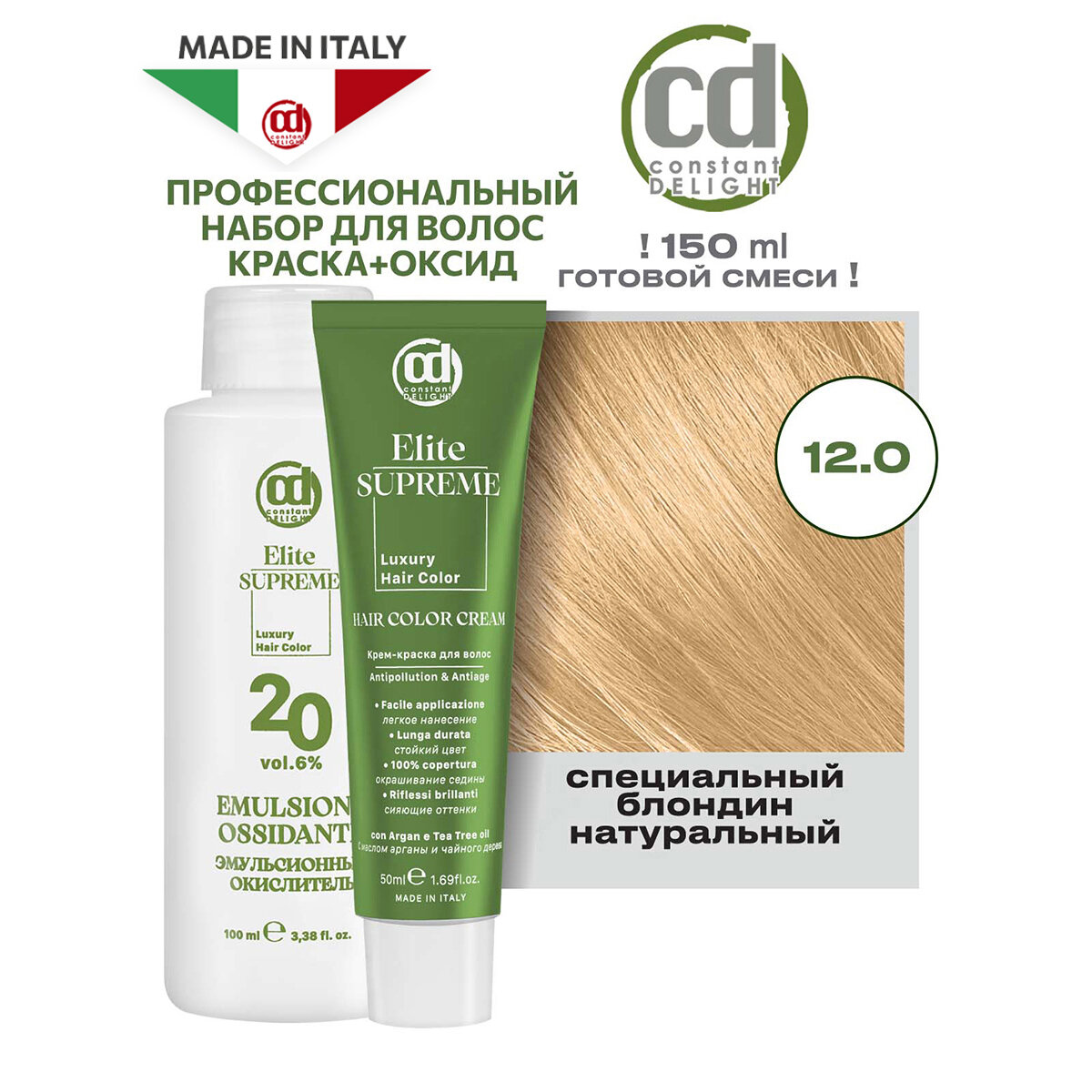 Купить Краска ELITE SUPREME для окрашивания волос CONSTANT DELIGHT 12.0 специальный блондин натуральный 50+100 мл