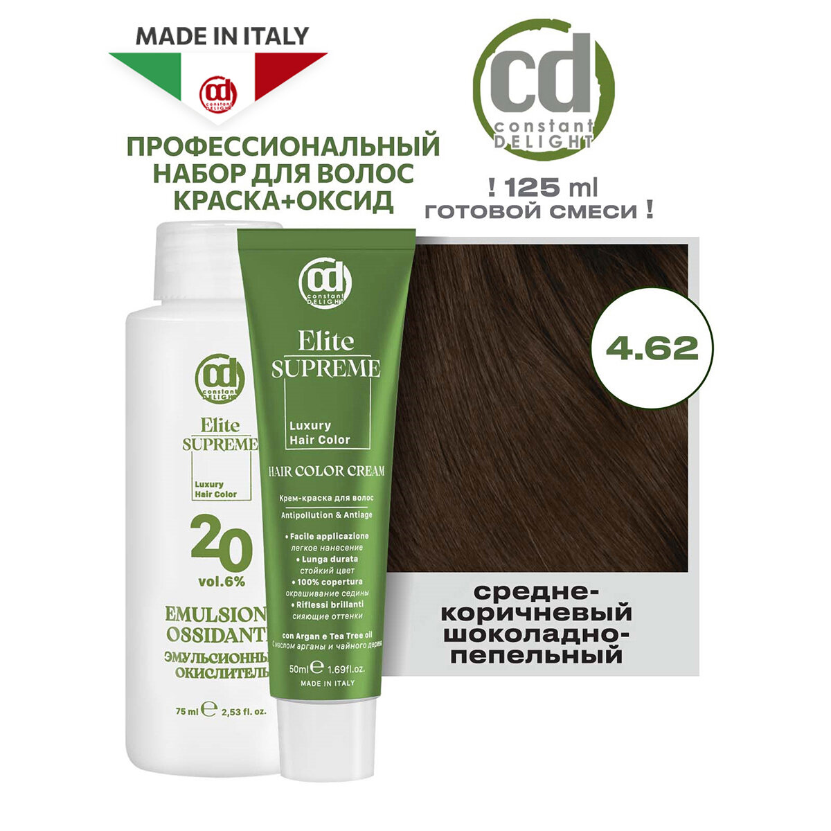 Купить Краска ELITE SUPREME для окрашивания волос CONSTANT DELIGHT 4.62 средне-коричневый шоколадно-пепельный 50+75 мл