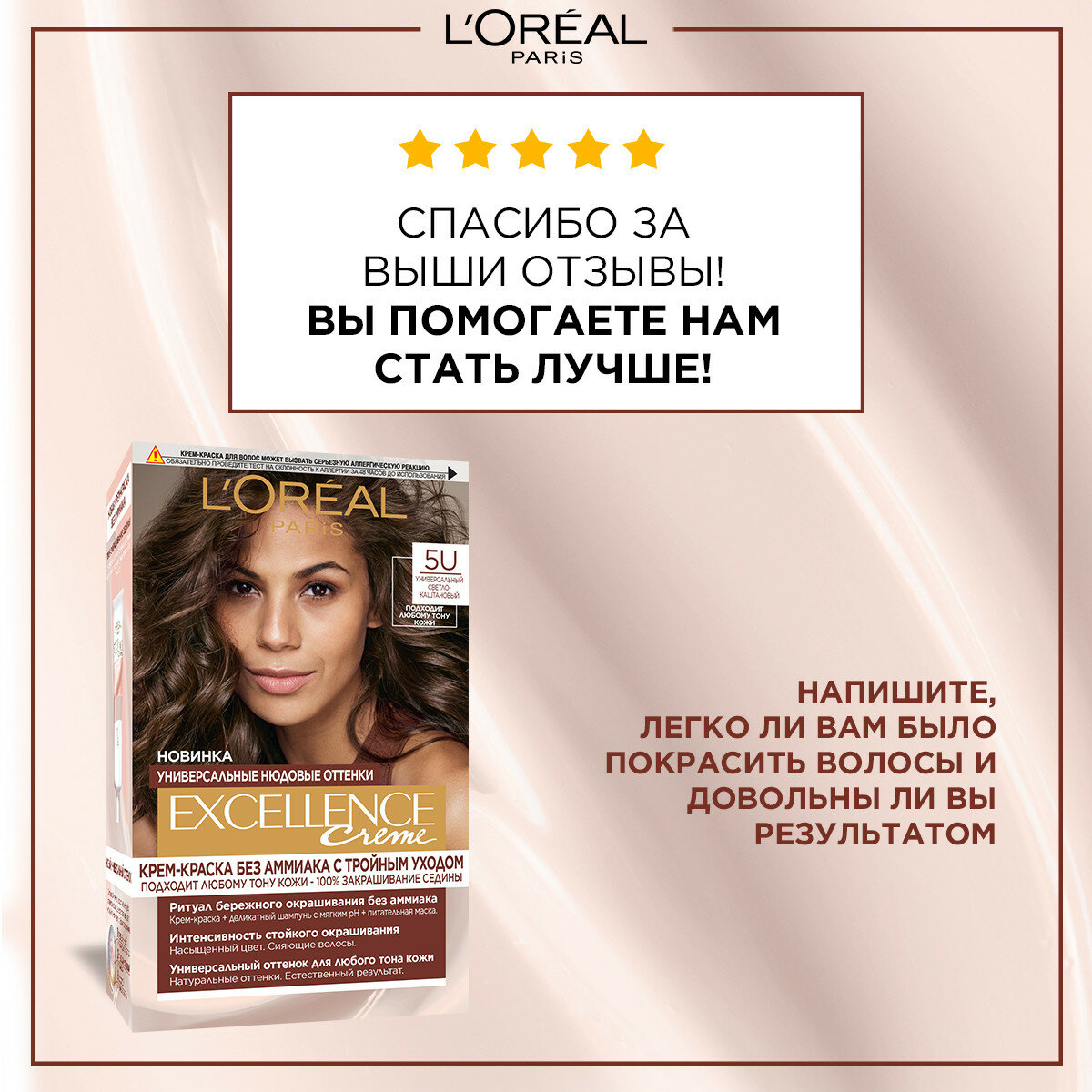 Крем-краска для волос L'Oreal Paris без аммиака Excellence Crème Универсальные Нюдовые Оттенки оттенок 5U универсальный светло-каштановый