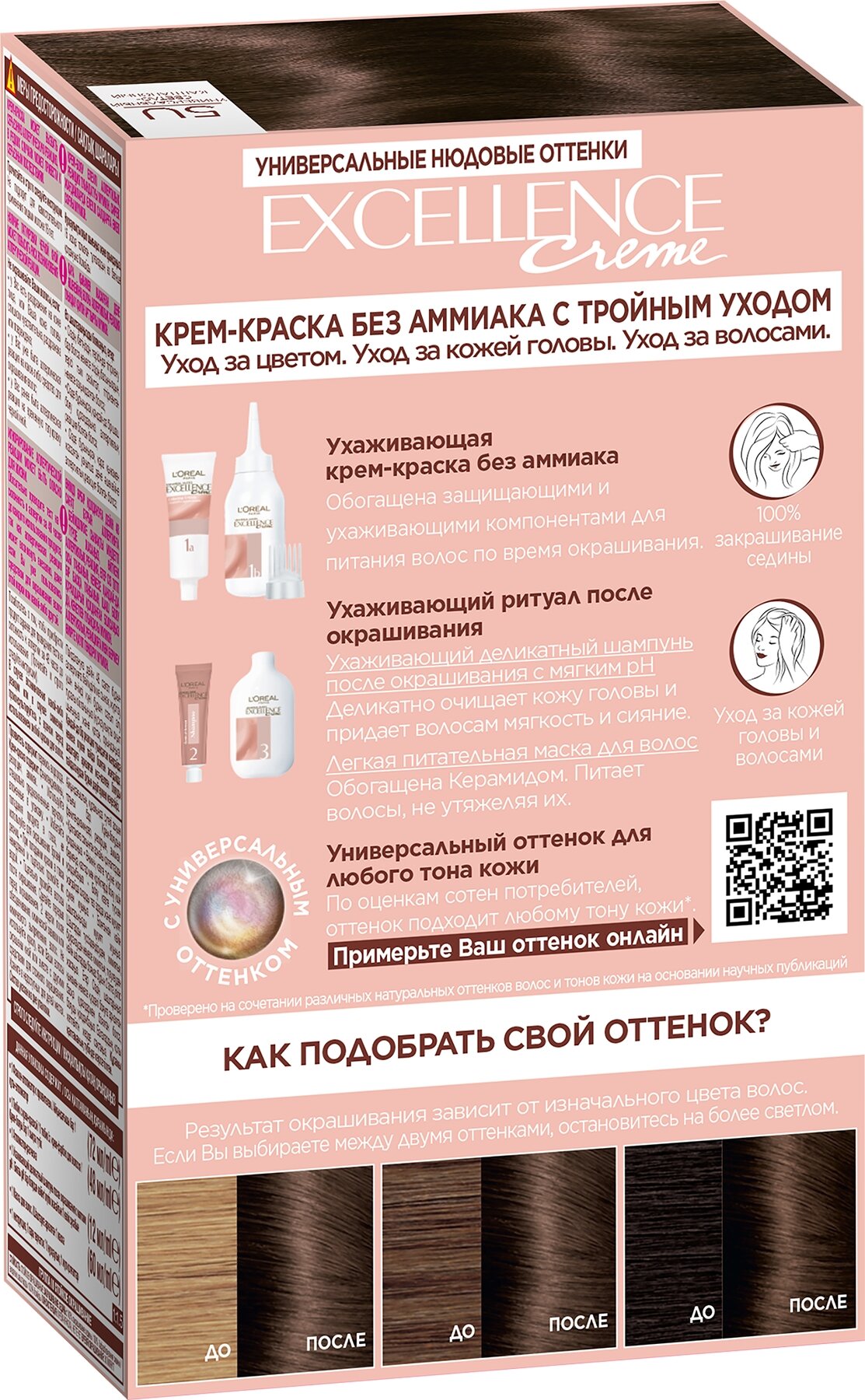 Крем-краска для волос L'Oreal Paris без аммиака Excellence Crème Универсальные Нюдовые Оттенки оттенок 5U универсальный светло-каштановый