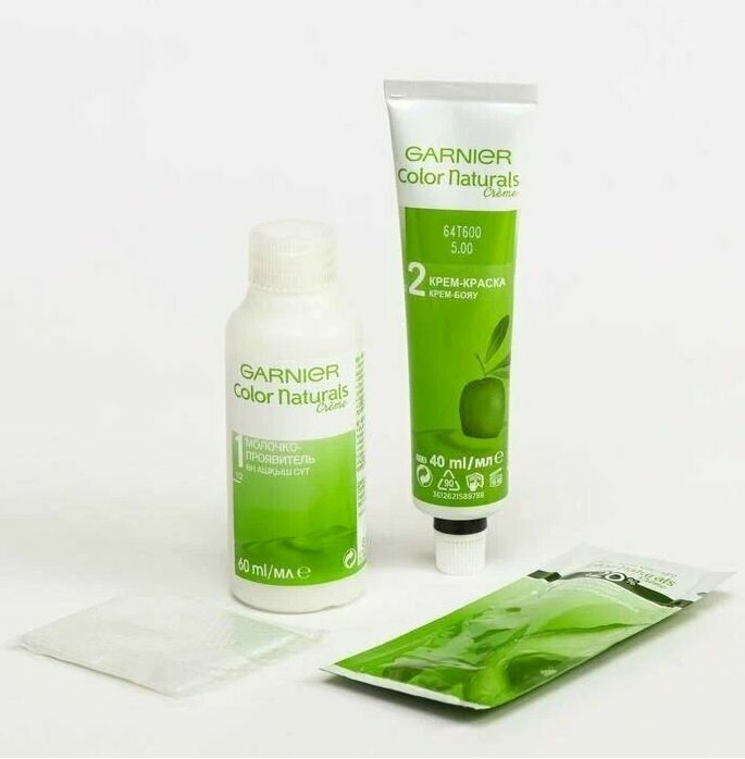 | Дополнительная информация | 1 флакон-аппликатор с проявителем - 72 мл; 1 тюбик с крем-краской - 48 мл; 1 аппликатор-расческа; 1 ухаживающий деликатный шампунь после окрашивания с мягким pH - 12 мл; 1 маска для волос - 60 мл; 1 инструкция, 1 пара перчаток |