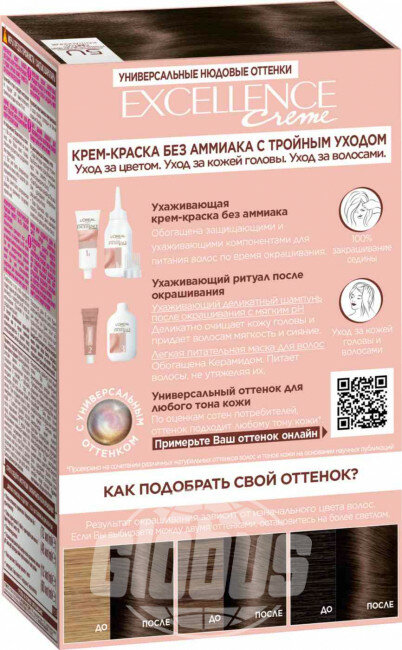 Крем-краска для волос L'oreal Excellence Creme Nudes, тон: 3U Универсальный темно-каштановый, 192 мл