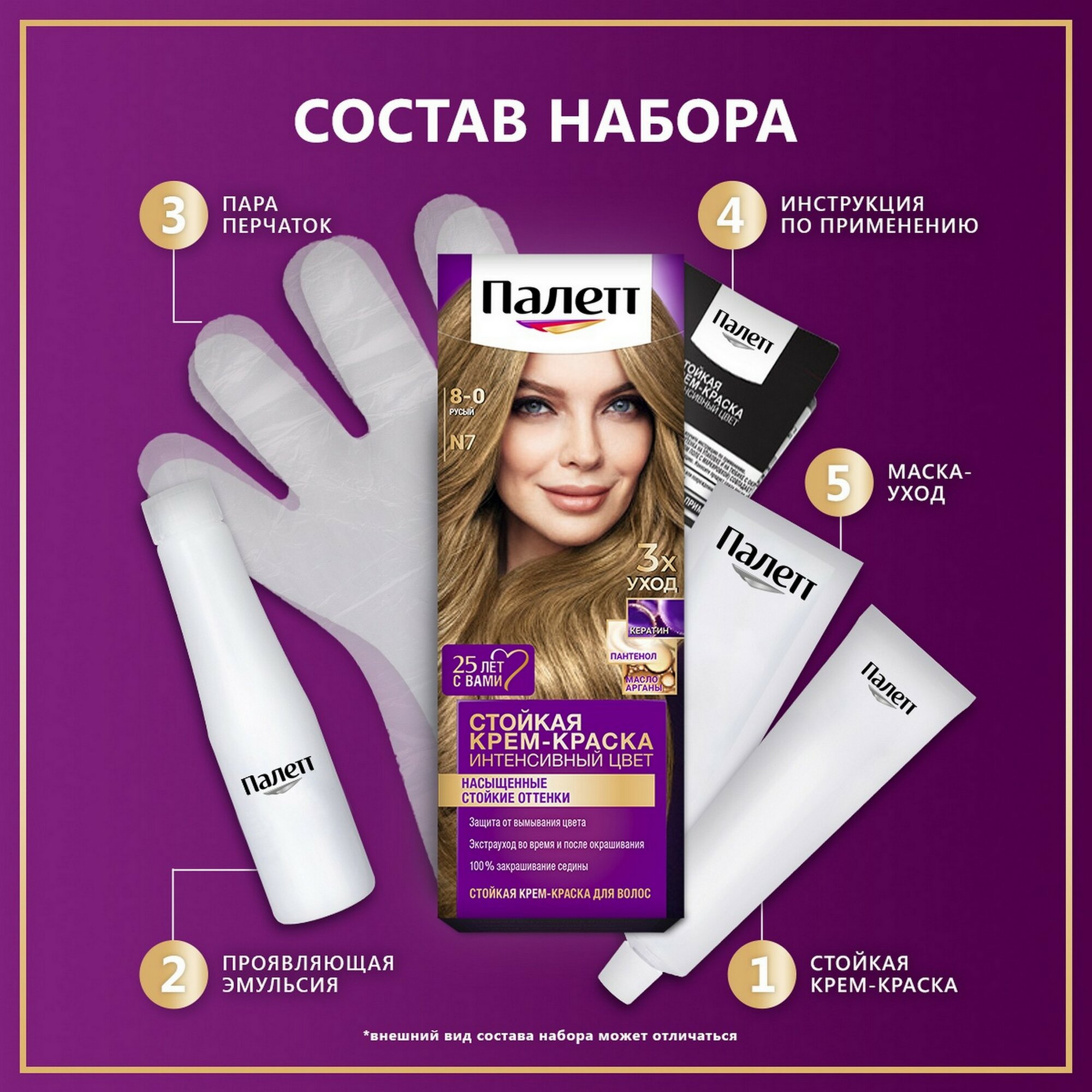 | Состав | окрашивающий крем: aqua, cetearyl alcohol, ammonium hydroxide, glyceryl stearate, ceteareth-20, octyldodecanol, sodium laureth sulfate, sodium cetearyl sulfate, serine, simmondsia chinensis seed oil, parfum, oleic acid, potassium stearate, glycerin, tetrasodium edta, carbomer, potassium hydroxide, ascorbic acid, linoleamidopropyl pg-dimonium chloride phosphate, propylene glycol, sodium sulfate, проявляющая эмульсия: aqua, paraffinum liquidum, hydrogen peroxide, cetearyl alcohol, peg-40 castor oil, sodium cetearyl sulfate, etidronic acid, potassium hydroxide, 2,6-dicarboxypyridine, disodium pyrophosphate, sodium benzoate, кондиционер: aqua, cetearyl alcohol, quaternium-87, hydrolyzed keratin, panthenol, prunus armeniaca kernel oil, niacinamide, stearamidopropyl dimethylamine, ceteareth-20, propylene glycol, isopropyl myristate, distearoylethyl hydroxyethylmonium methosulfate, citric acid, phenoxyethanol, parfum, glyceryl stearate, sodium methylparaben, hexyl cinnamal, butylphenyl methylpropional |