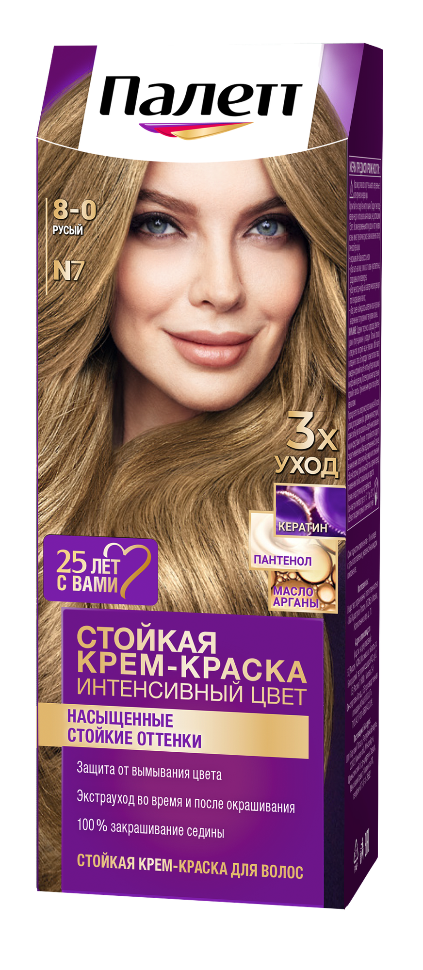 Палетт Стойкая крем-краска Интенсивный цвет, N7 8-0 Русый, 110 мл - 3 шт