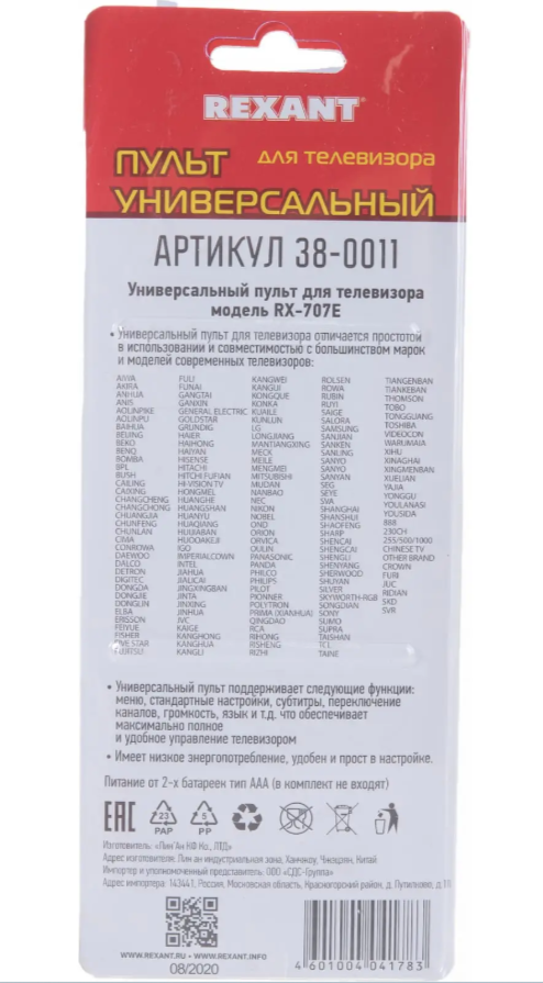 СохранитьПульт универсальный для телевизора (RX-951) REXANT интересное: