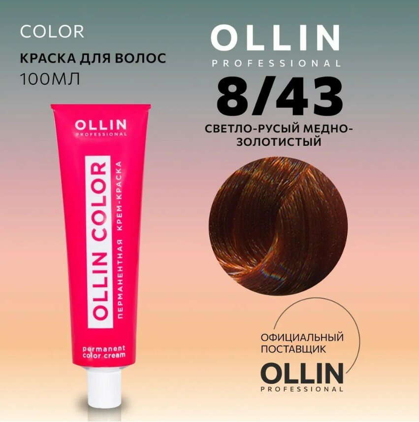 Ollin Color - Оллин Колор Стойкая крем-краска для волос, 100 мл - OLLIN COLOR 8/43 светло-русый медно-золотистый