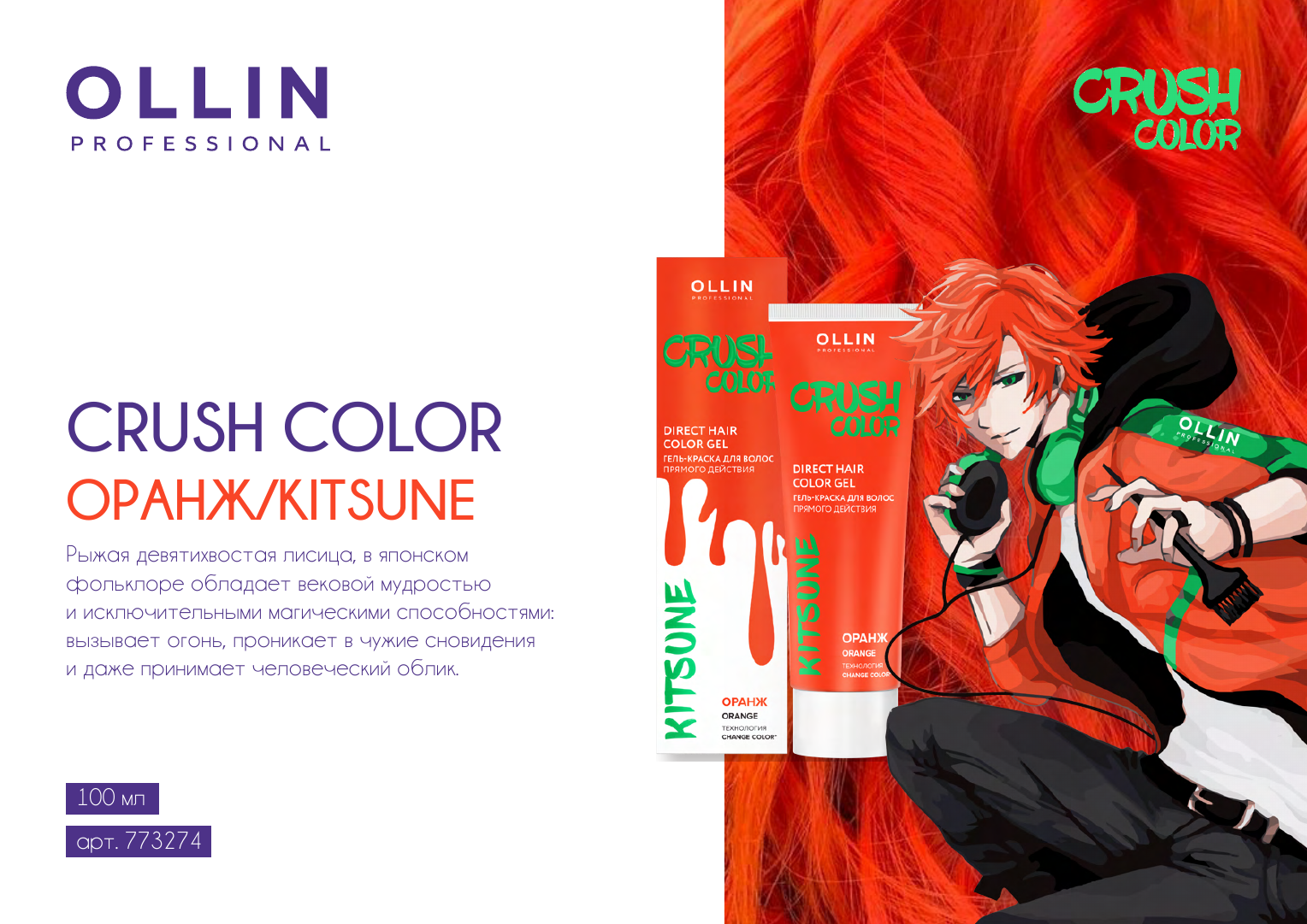 Купить Ollin, Гель-краска для волос прямого действия CRUSH COLOR оранж, 100мл