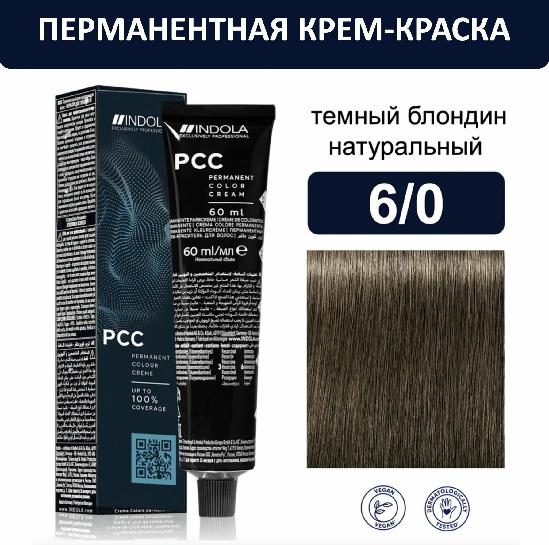 Indola Natural Essentials 6.00 Стойкая крем-краска для волос 60мл