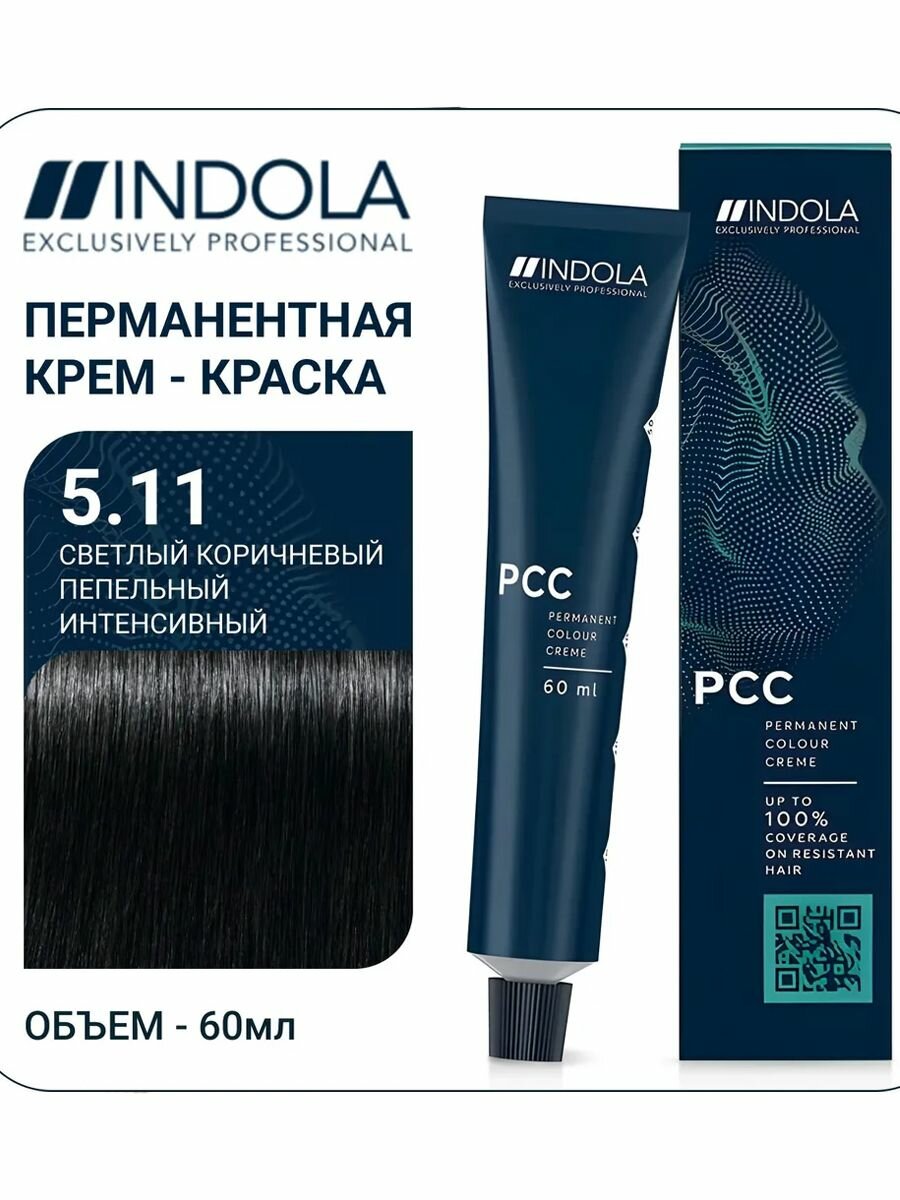 Indola Natural & Essentials 5.11 Светлый коричневый интенсивный пепельный Перманентный крем-краситель для волос 60мл