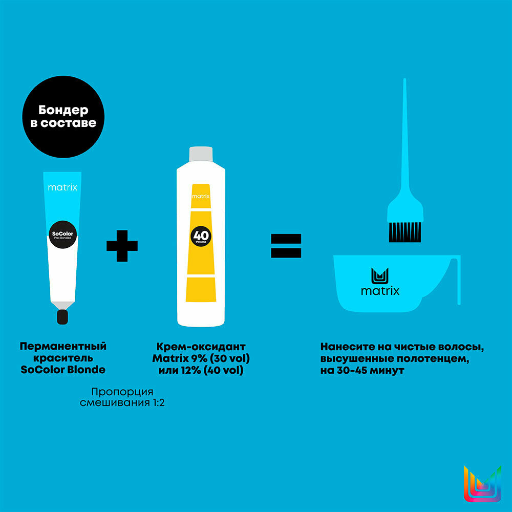| Способ применения | Работайте в перчатках. Смешайте краситель с крем-оксидантом Matrix в пропорции 1 к 1 и нанесите смесь на волосы. Время выдержки зависит от базы и желаемого оттенка. Чтобы добиться стойкого и предсказуемого результата, производитель рекомендует использовать краситель только с оксидантами Matrix. |