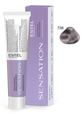 ESTEL Безаммиачная краска для волос SENSATION DE LUXE 7/16 русый пепельно-фиолетовый (60 мл)