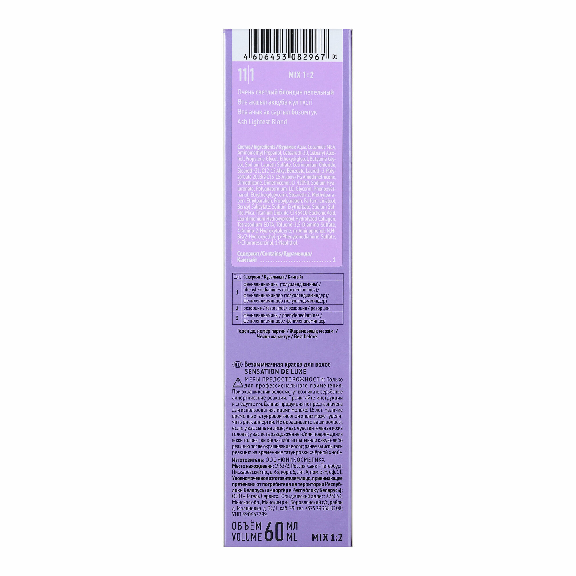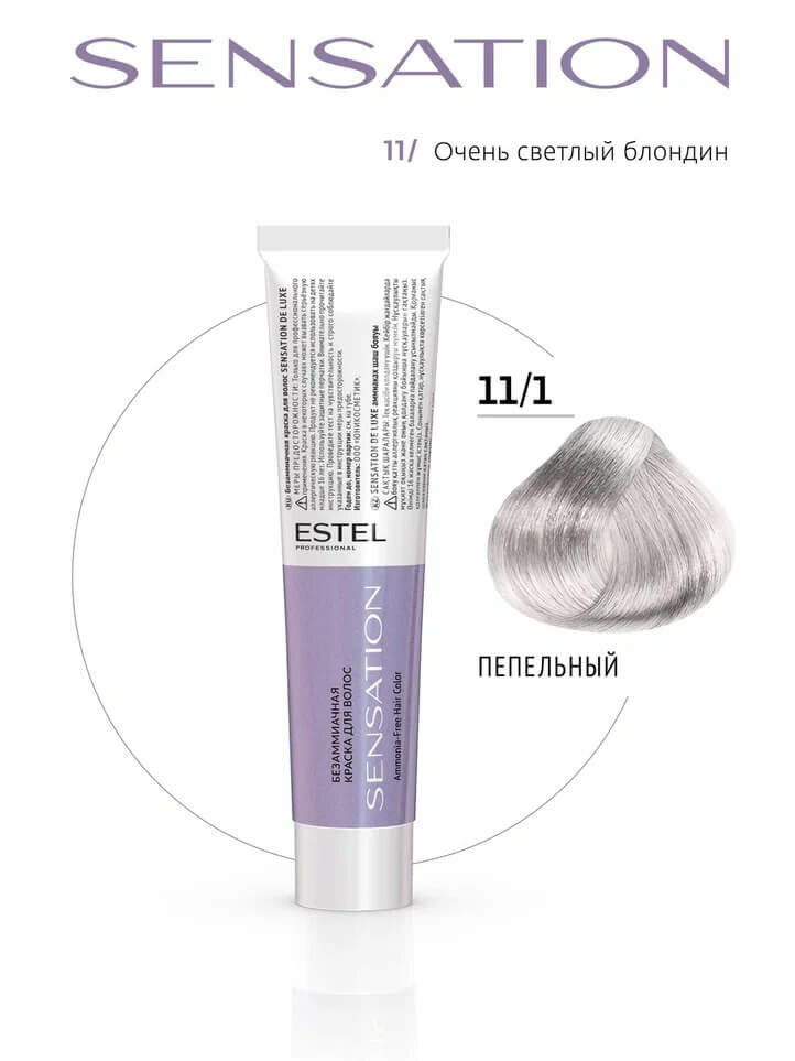Купить 11/1 Безаммиачная краска для волос SENSATION DE LUXE 11/1 очень светлый блондин пепельный, 60 мл