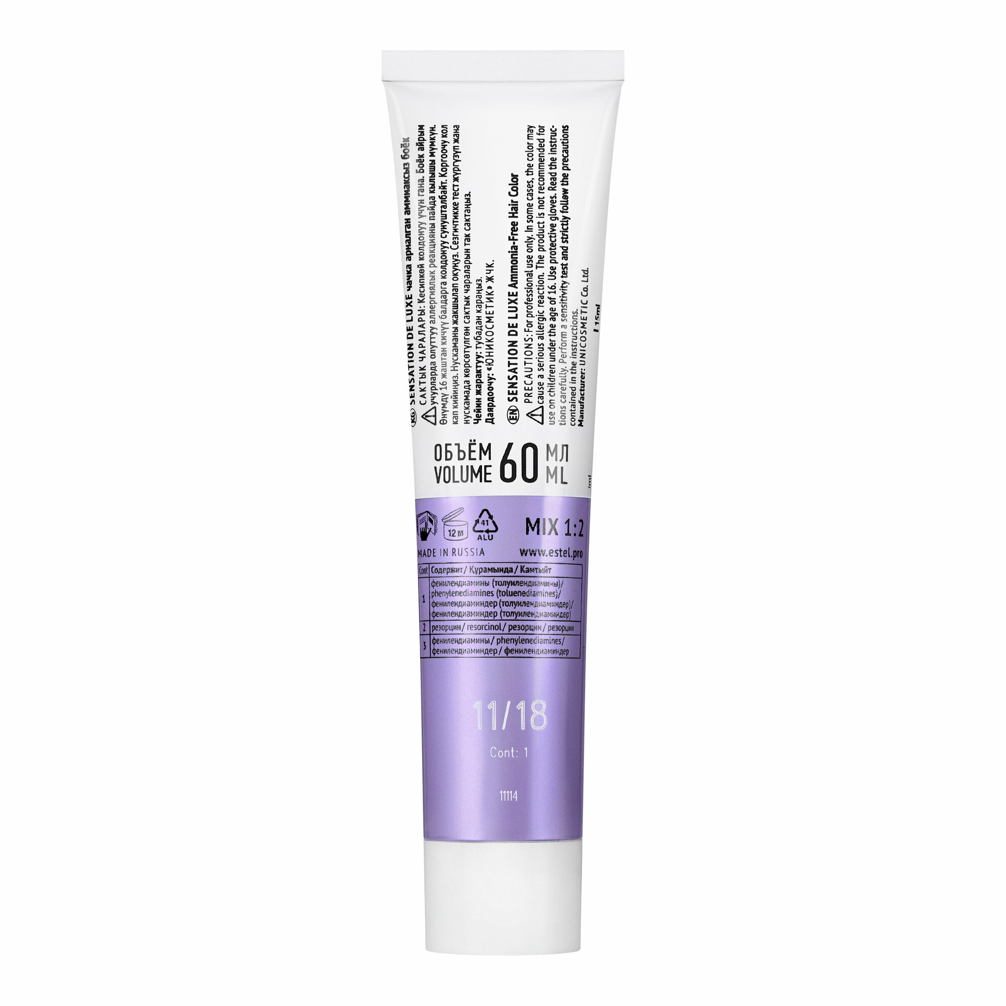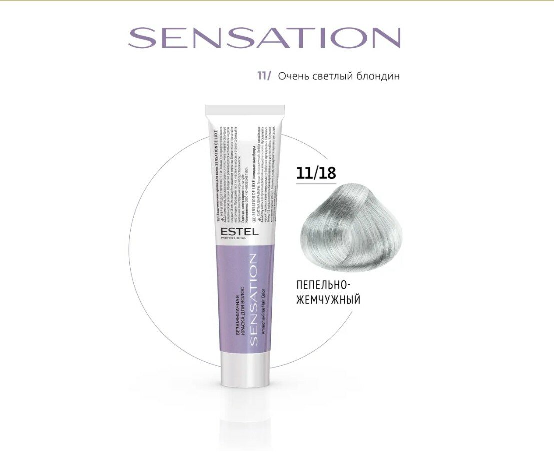 Купить Безаммиачная краска для волос SENSATION DE LUXE 11/18 очень светлый блондин пепельно-жемчужный, 60 мл.