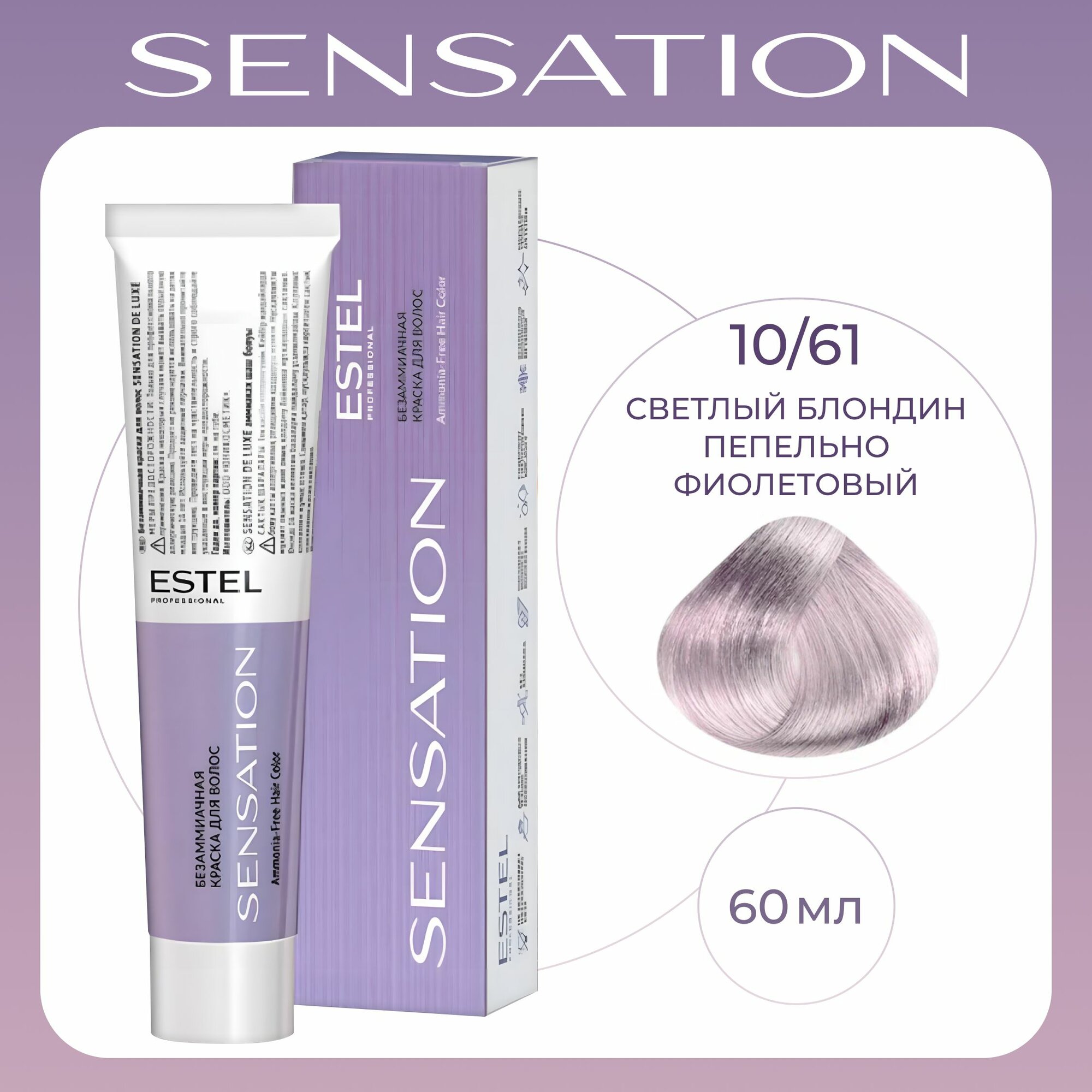 ESTEL Sensation безаммиачная крем-краска для волос, 10/61 светлый блондин фиолетово-пепельный, 60 мл