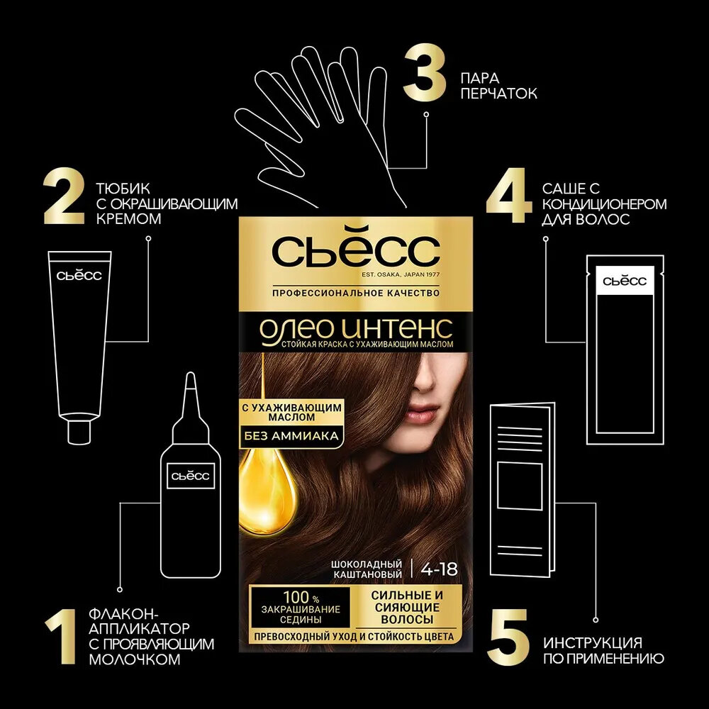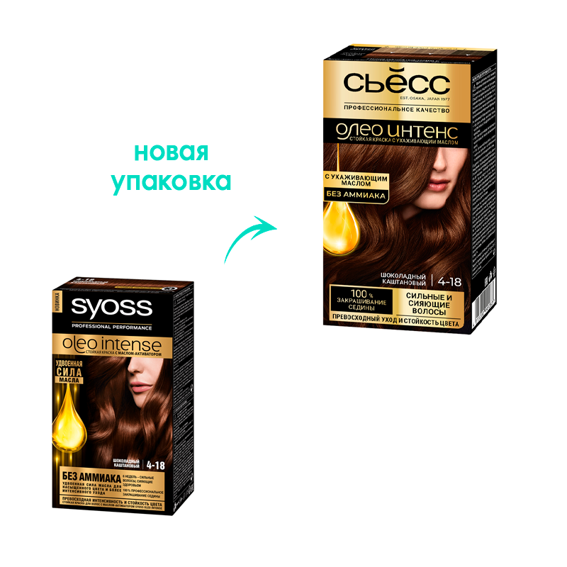 Краска для волос Сьесс / Syoss Oleo Intense, тон 4-18 шоколадный каштан .