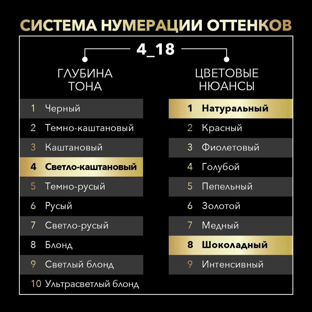 | Цвет товара | 1-10 Глубокий чёрный, 10-00 ультра-светлый блонд, 10-05 Жемчужный блонд, 10-50 Дымчатый блонд, 12-00 Платиновый блонд экстра, 2-10 чёрно-каштановый, 3-10 глубокий каштановый, 3-82 Красное дерево, 3-86 Темный Шоколад, 4-15 Ореховый каштановый, 4-18 Шоколадный каштановый, 4-50 Графитовый каштановый, 4-60 Золотистый каштановый, 5-10 натуральный каштановый, 5-28 Горячий Шоколад, 5-77 Глянцевая бронза, 5-86 Карамельный каштановый, 6-10 Тёмно-русый, 6-55 Пепельный темно-русый, 6-76 Мерцающий медный, 6-80 Золотистый русый, 7-10 Натуральный светло-русый, 7-58 Холодный русый, 7-70 Золотое манго, 8-05 Натуральный блонд, 8-50 натуральный пепельный блонд, 8-60 Медовый блонд, 8-70 Янтарный блонд, 8-86 Золотистый светло-русый, 9-10 Яркий блонд, 9-11 Холодный блонд, 9-60 Песочный блонд |