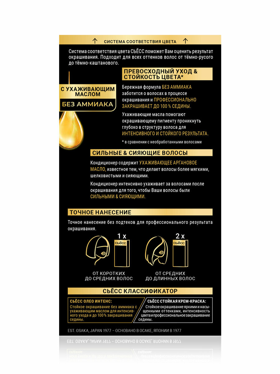 Краска для волос СЬĔСС, Олео Интенс, тон 2-10 Чёрно-каштановый, 50 мл