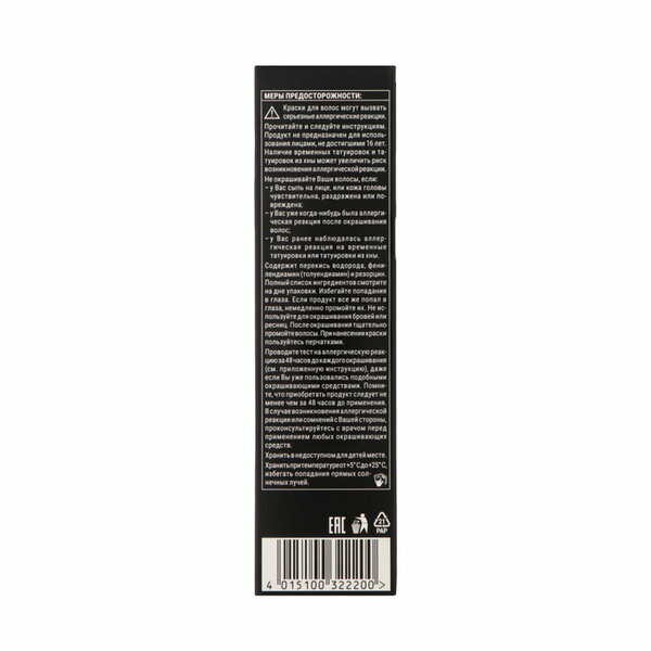 | Дополнительная информация | окрашивающий крем - 50 мл, флакон-аппликатор с проявителем - 50 мл, кондиционер - 15 мл |