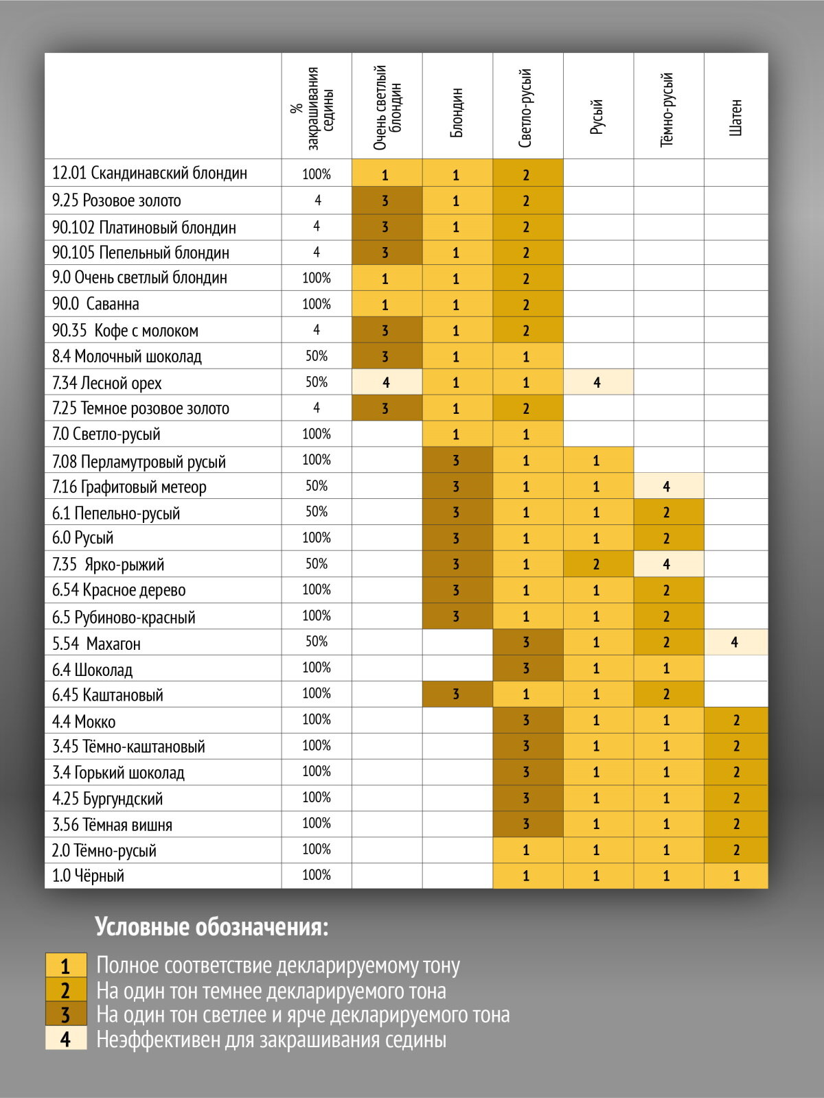 | Дополнительная информация | краситель – 50 мл, окислитель – 50 мл, бальзам – 15 мл Перед применением проведите тест на аллергическую реакцию. Не обязательно мыть волосы перед окрашиванием. Рекомендуется выдержать 2 недели до и после химической завивки. Не рекомендуется использовать краску на волосах, окрашенных хной. |