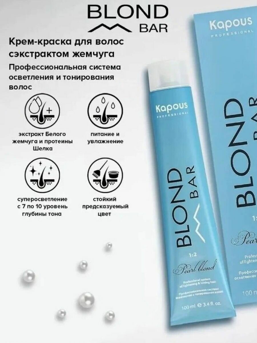 KAPOUS, BLOND BAR, Крем-краска для волос с экстрактом жемчуга, Пепельный перламутровый, 100 мл, BB 1012