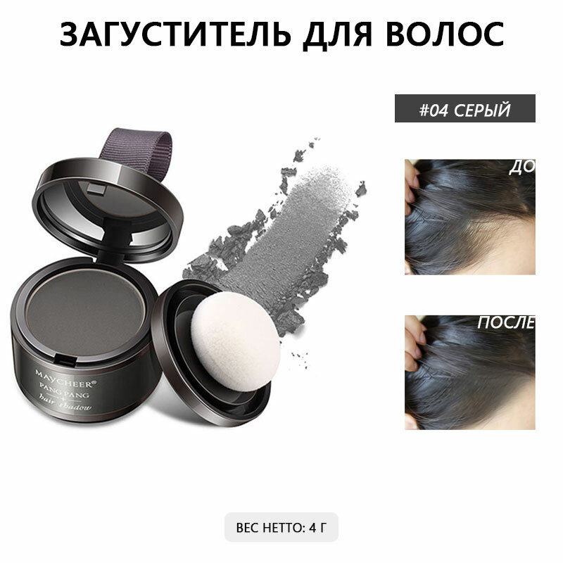 СохранитьПудра маскирующая для волос, Тени для закрашивания седины, 4г, maycheer, серый, камуфляж для волос интересное: