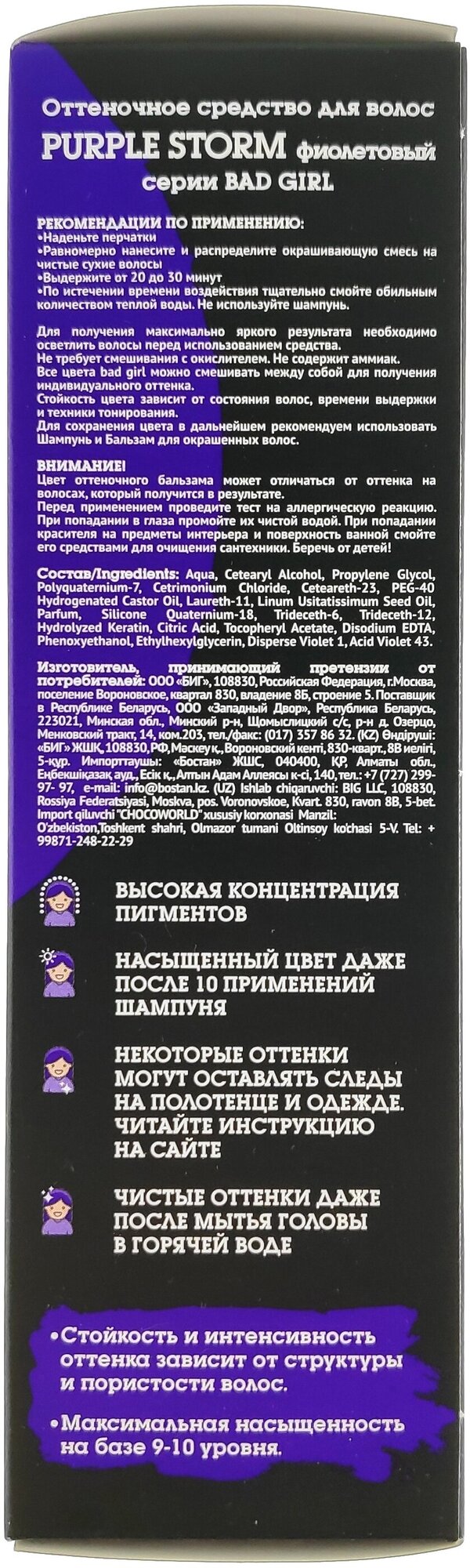 Оттеночный бальзам-пигмент прямого действия Bad Girl BASIC Purple Storm, фиолетовый, 150 мл