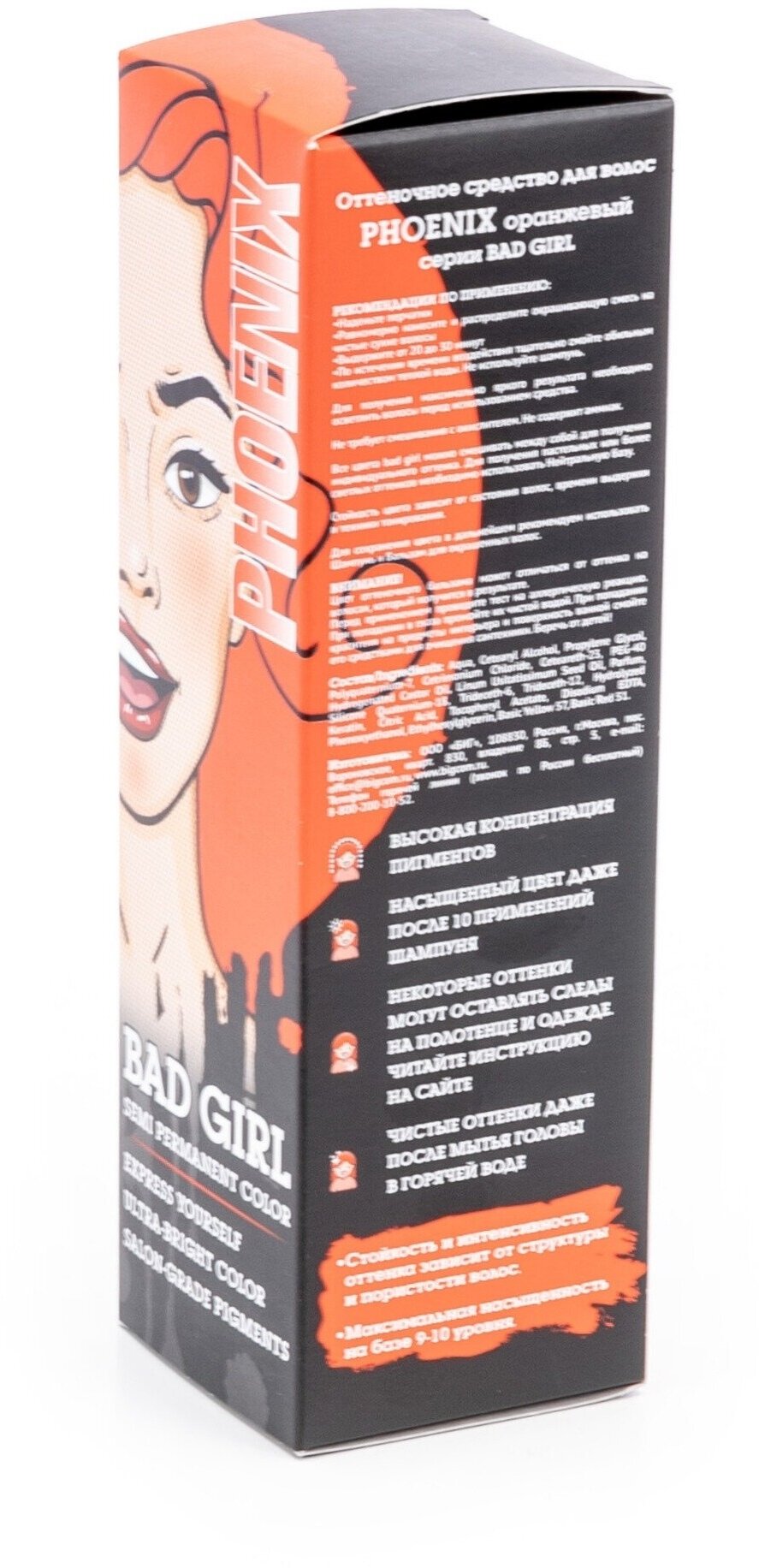 Бэд Герл (Bad Girl) Оттеночный бальзам , яркое окрашивание- пигмент прямого действия Phoenix (оранжевый)