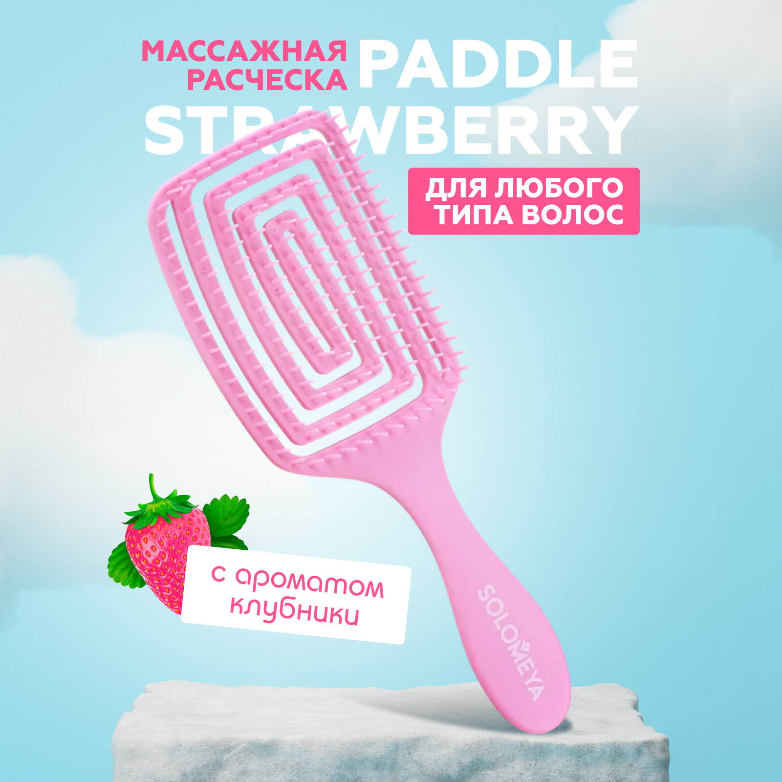 Расческа для сухих и влажных волос Solomeya Brush Paddle с ароматом клубники .
