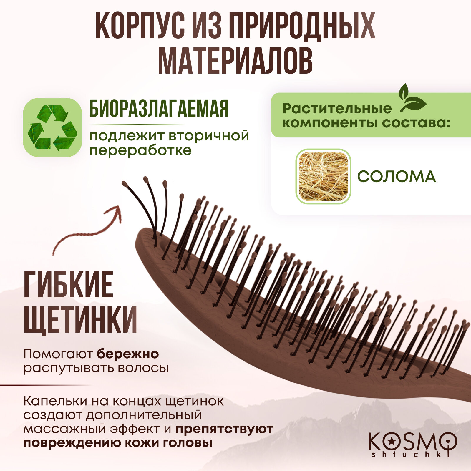 | Особенности | биоразлагаемая / для влажных волос / для вьющихся волос / для распутывания волос / продувная |