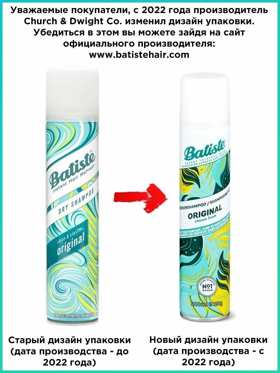 Купить Batiste Dry Shampoo Original - Шампунь сухой (классический) 200 мл