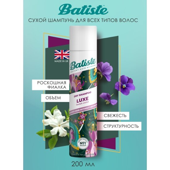 Ниже Вы можете прочитать отзывы на Batiste Dry Luxe Сухой шампунь для волос 200 мл, ознакомится с подробными характеристиками, посмотреть интересные обзоры и фотографии на Batiste Dry Luxe Сухой шампунь для волос 200 мл.