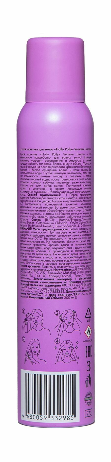 HOLLY POLLY Сухой шампунь Holly Polly Summer Dreams, 200 мл