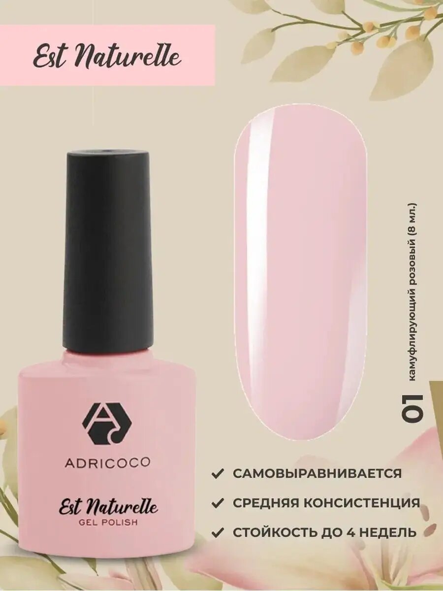 Купить Adricoco, камуфлирующий гель-лак (Est Naturelle №01), 8 мл