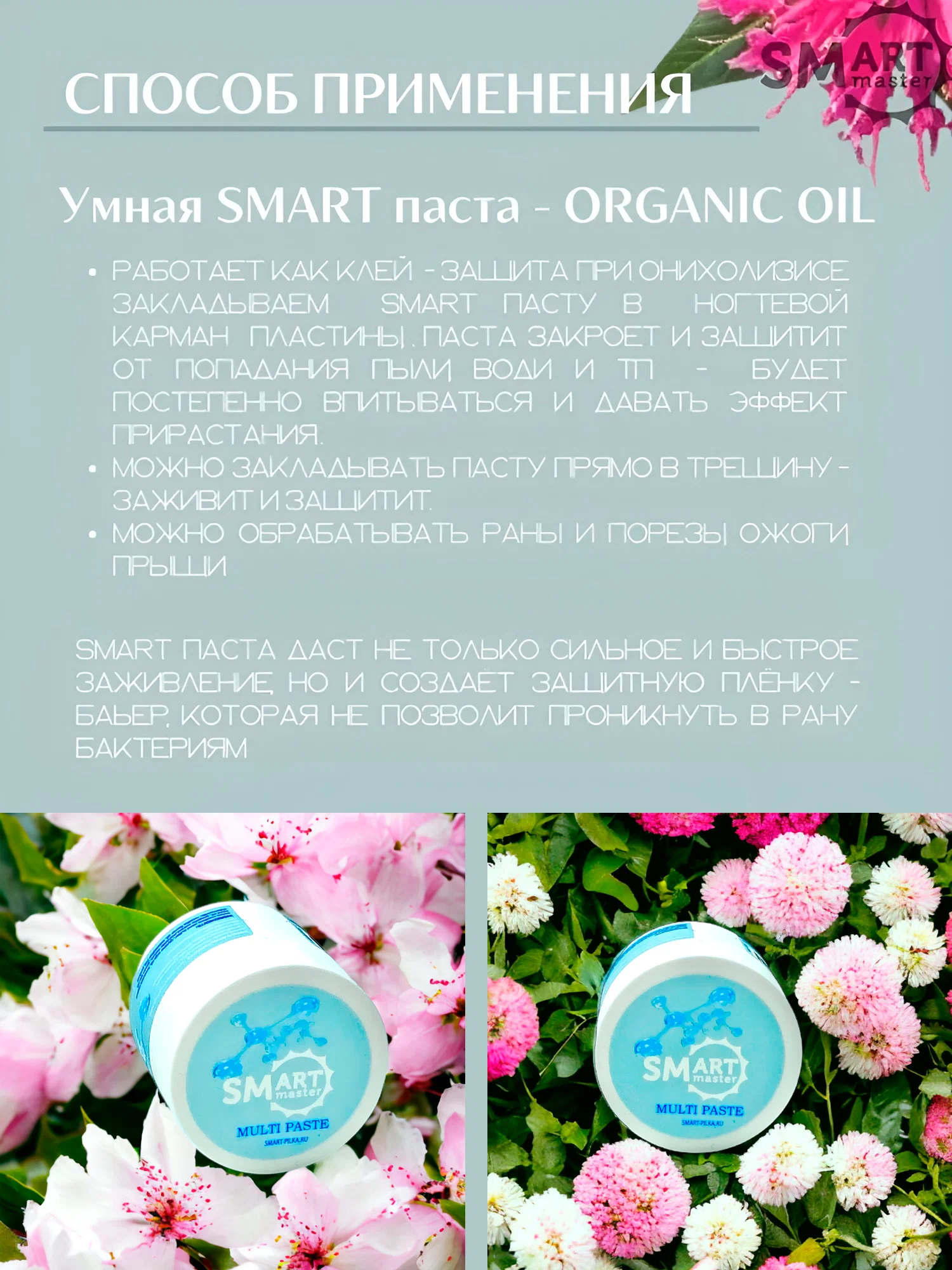 Smart master, Умная Мульти Паста Organic, Паста для маникюра/педикюра, Смарт Паста для лечения онихолизиса, заживления трещин 15 мл