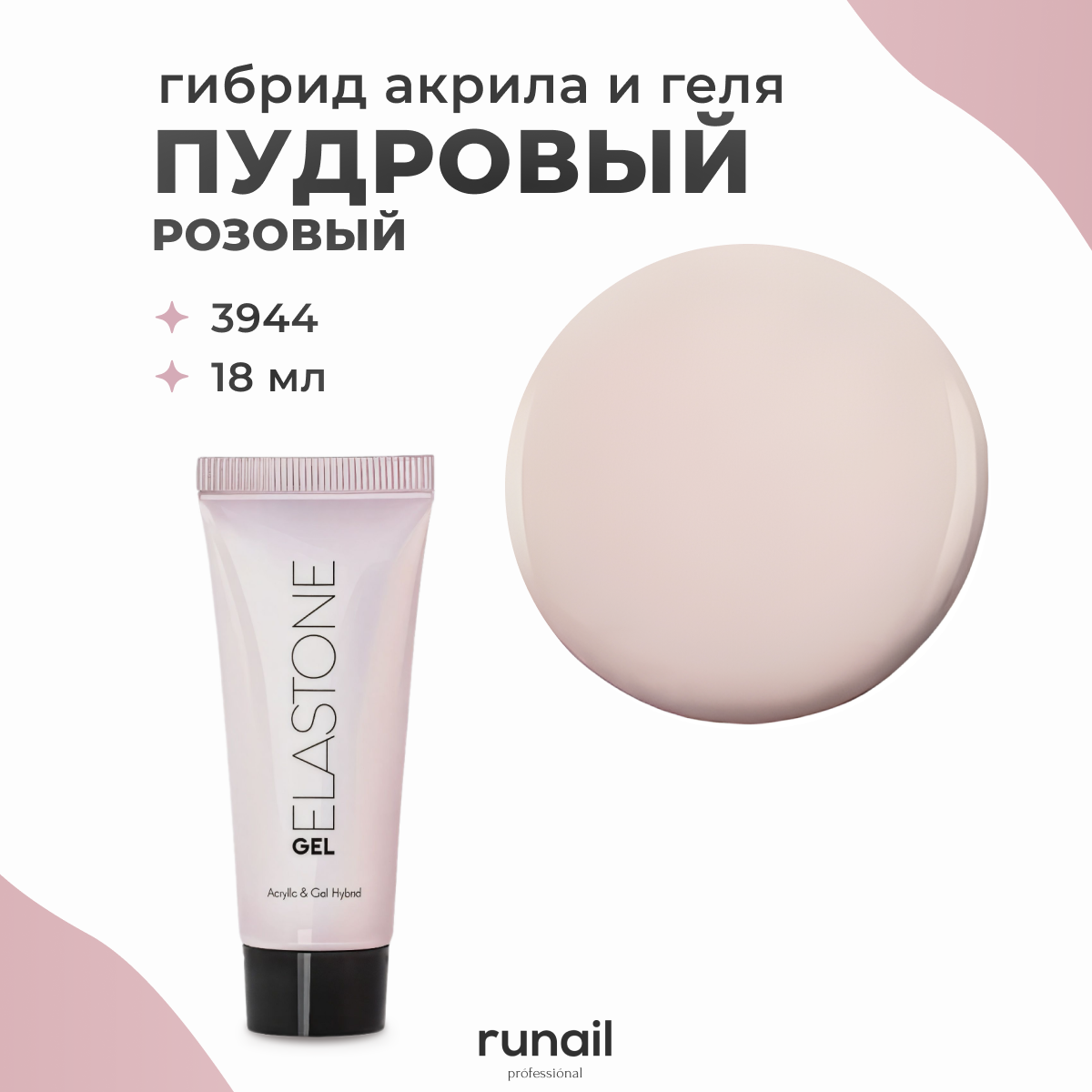 Гибрид акрила и геля №3940 для наращивания ELASTONE GEL 18 мл розовый Runail