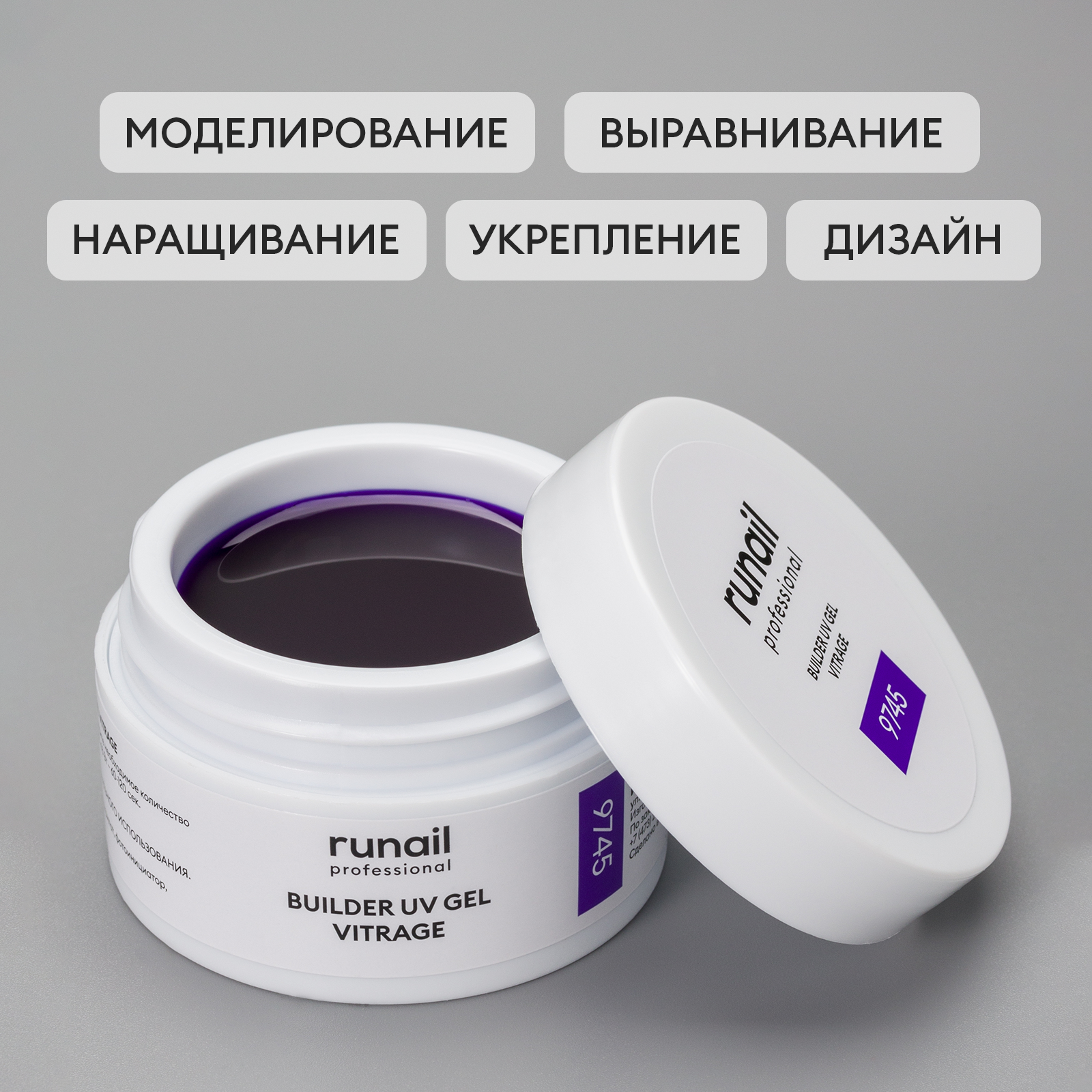 RuNail, BUILDER UV GEL VITRAGE - моделирующий УФ-гель витражный №9743, 15 гр