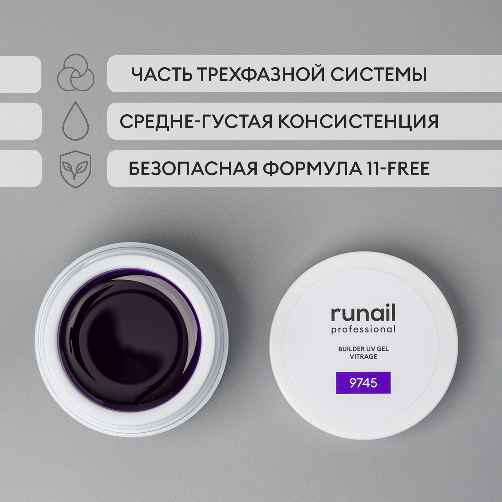 Моделирующий УФ-гель витражный №9745 ruNail сиреневый, 15 г