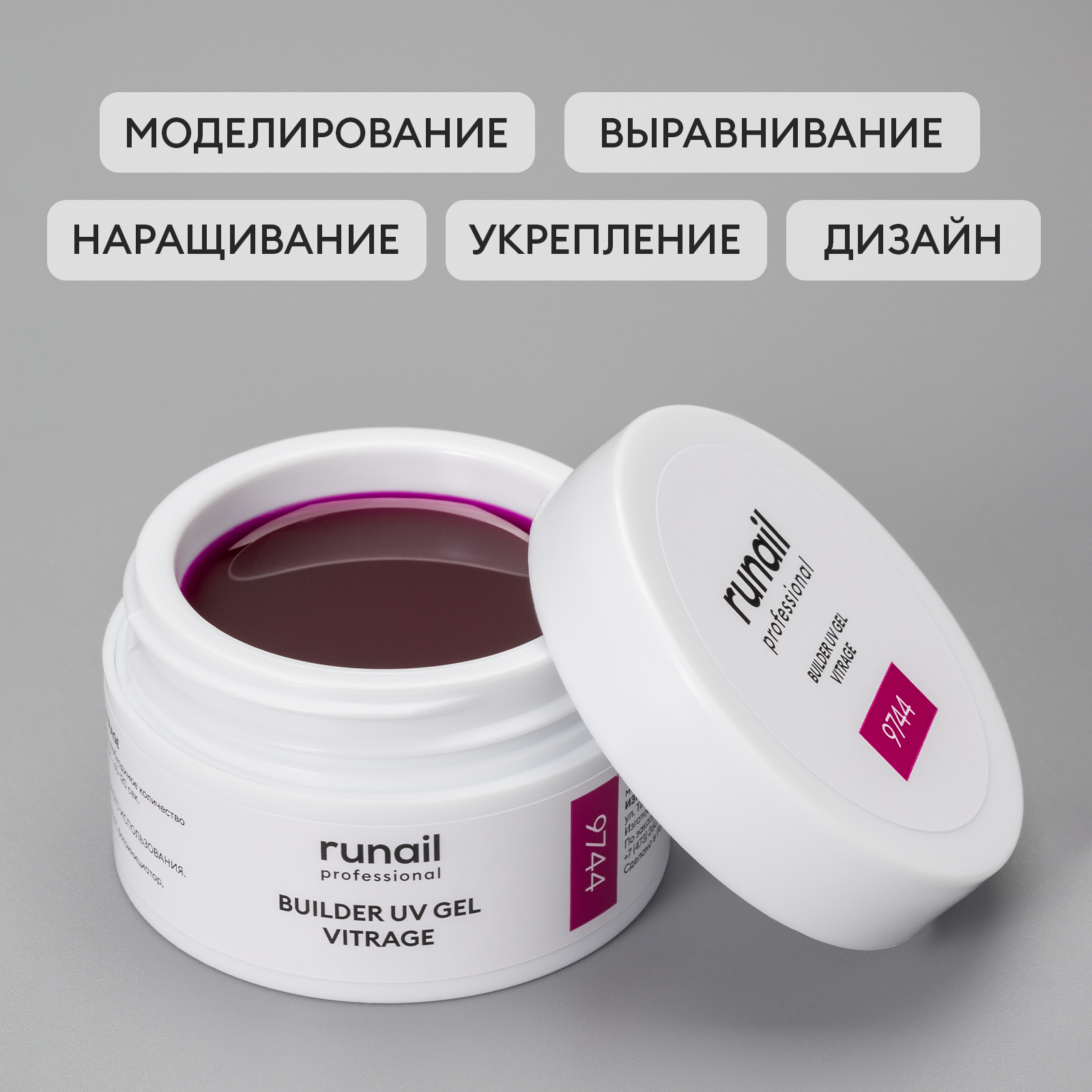 RuNail, BUILDER UV GEL VITRAGE - моделирующий УФ-гель витражный №9744, 15 гр