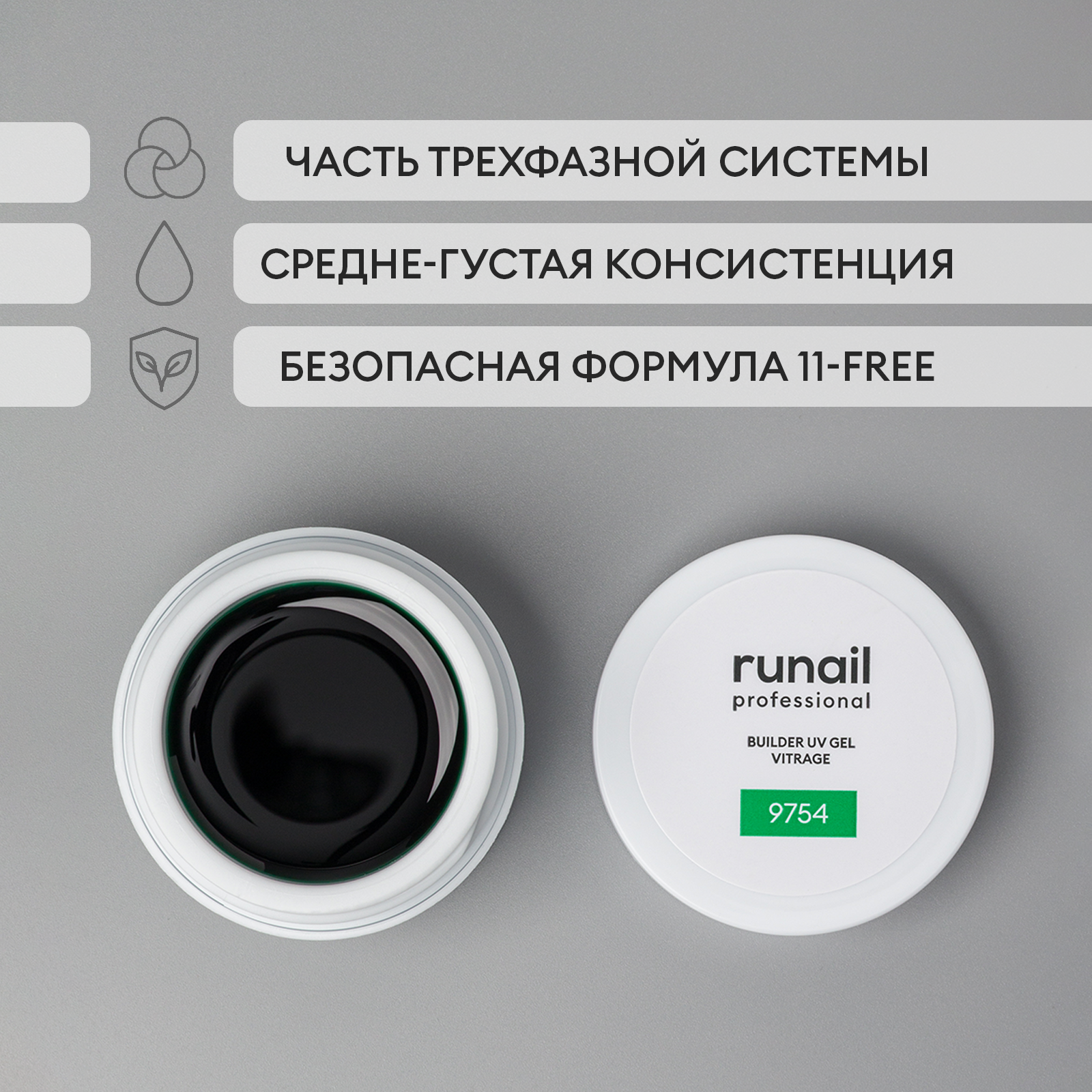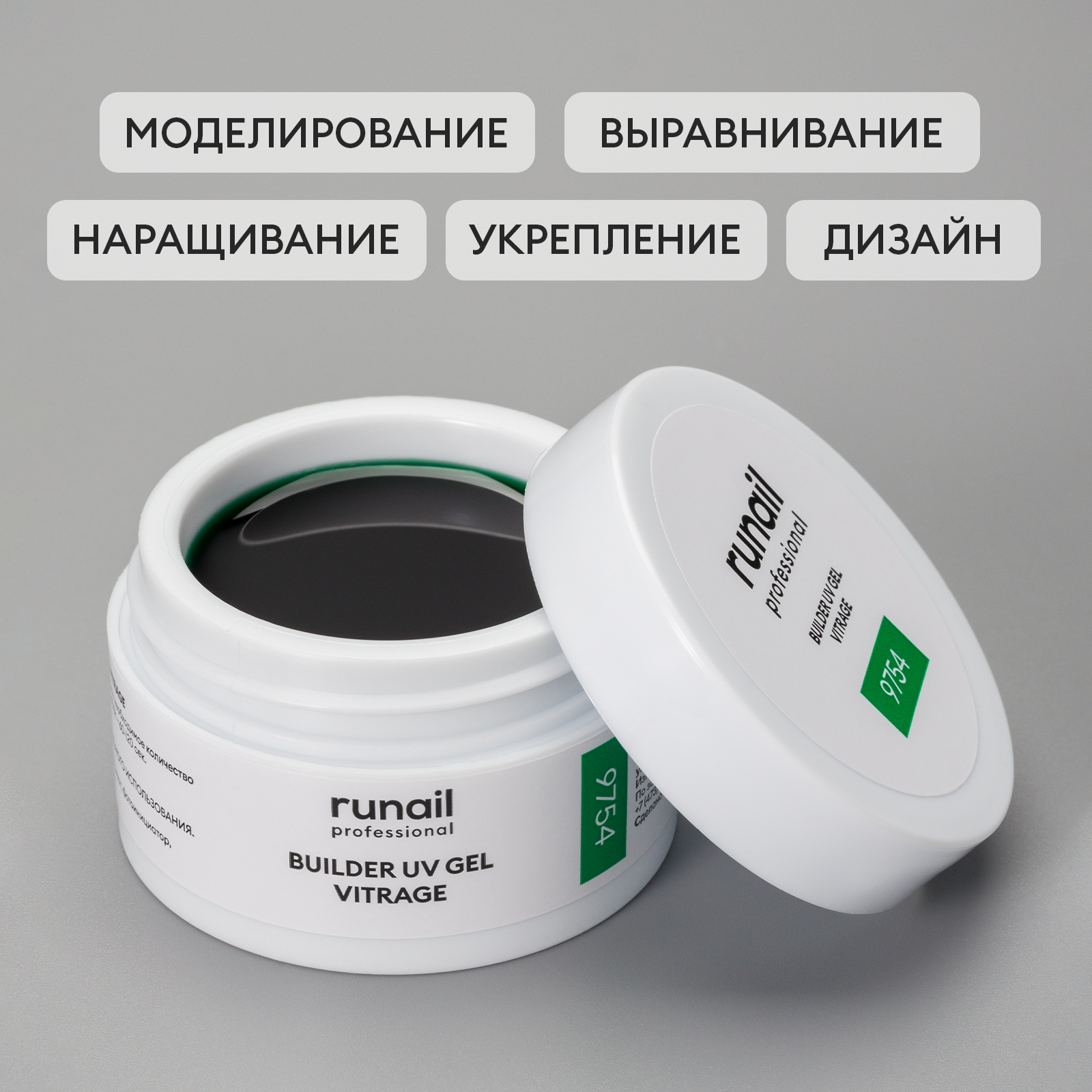 RuNail, BUILDER UV GEL VITRAGE - моделирующий УФ-гель витражный №9754, 15 гр