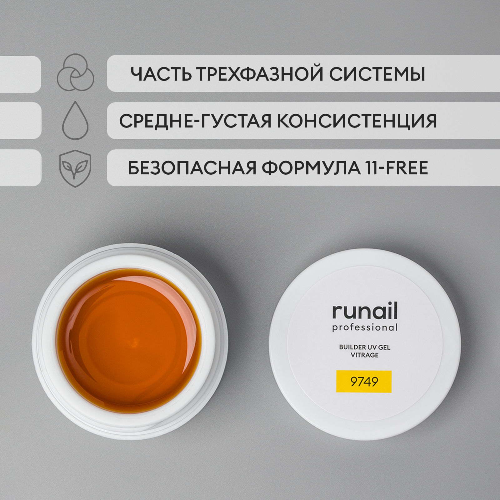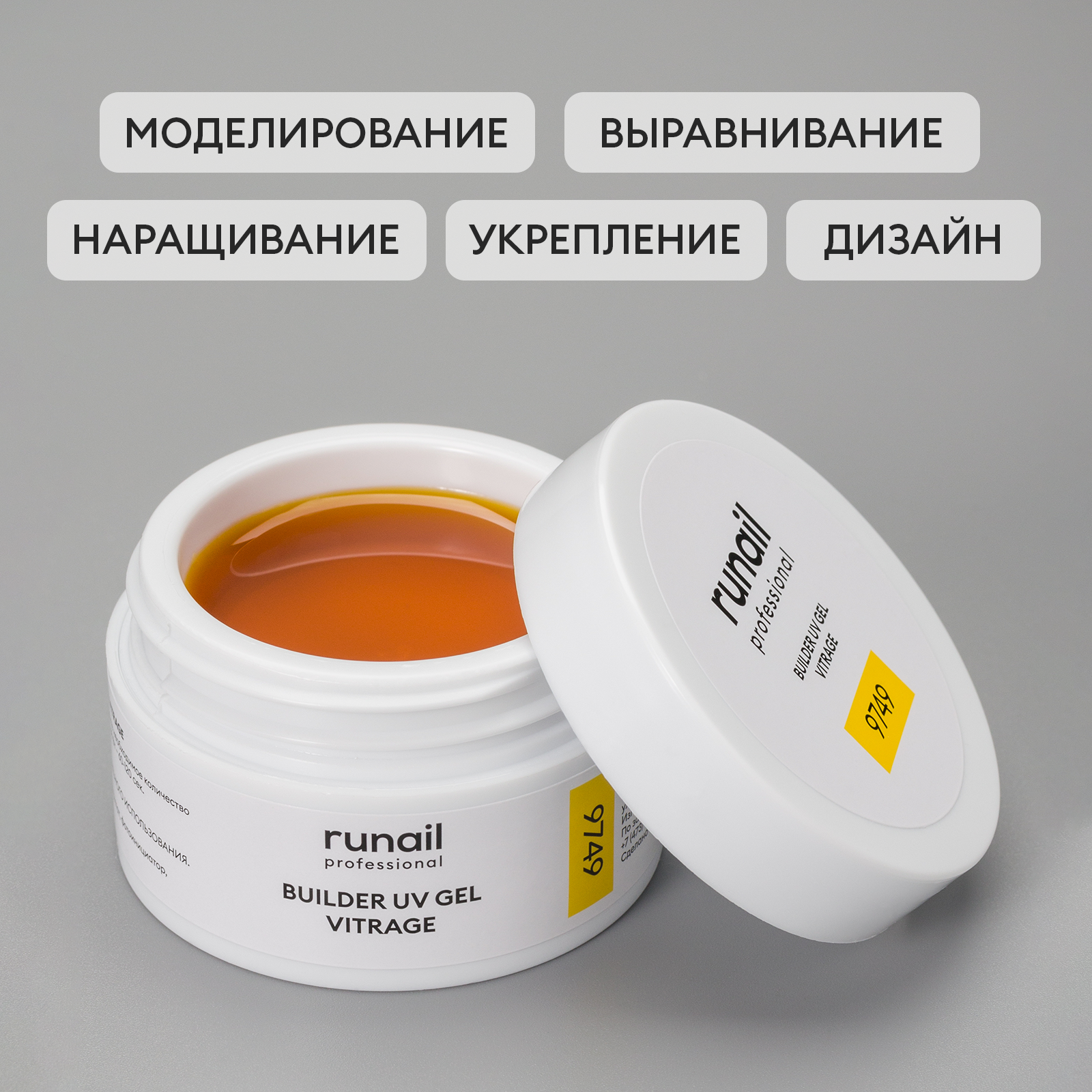 RuNail, BUILDER UV GEL VITRAGE - моделирующий УФ-гель витражный №9749, 15 гр