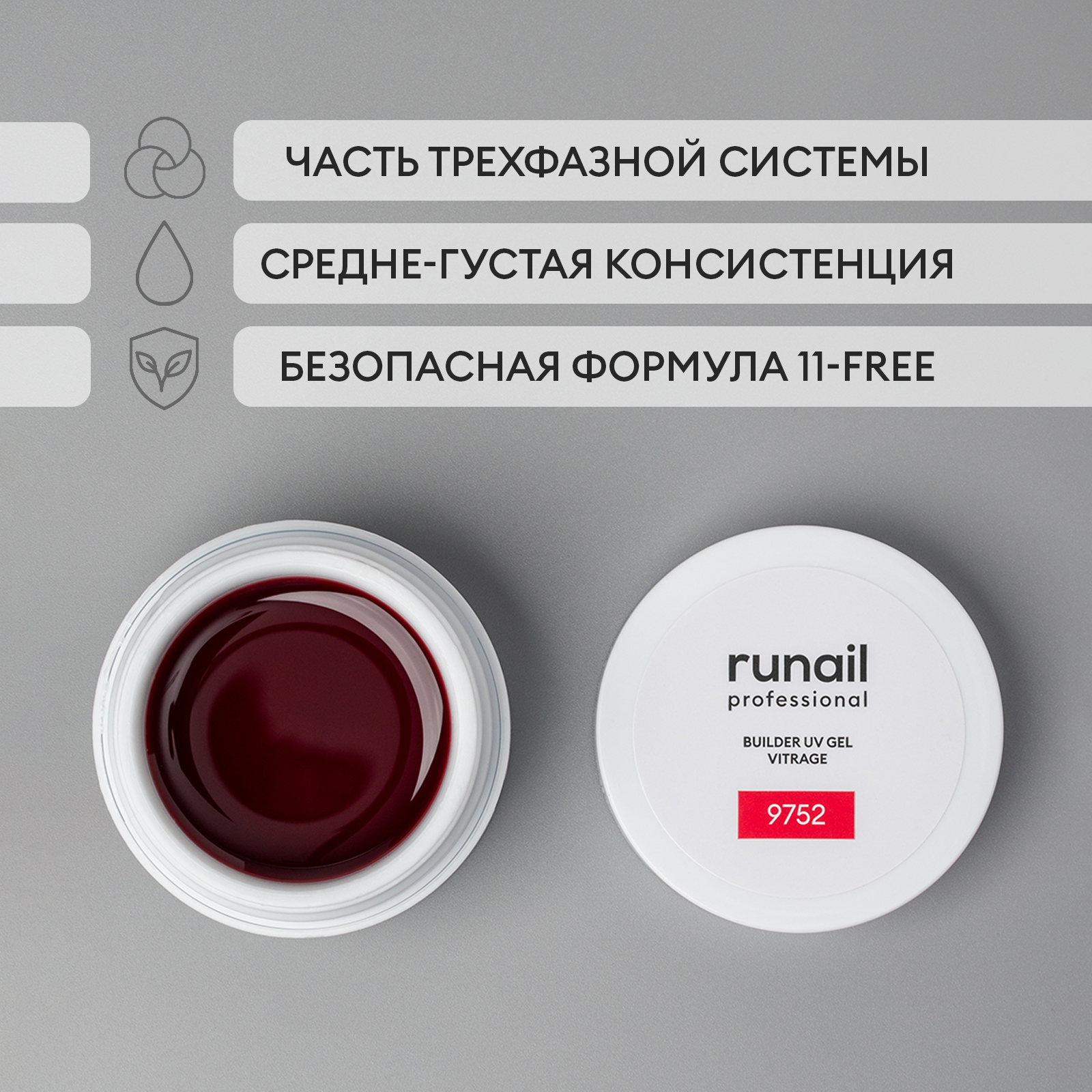 RuNail, BUILDER UV GEL VITRAGE - моделирующий УФ-гель витражный №9752, 15 гр
